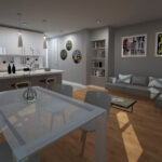 Interior Renovation of an existing condo including kitchen, dining and living area.